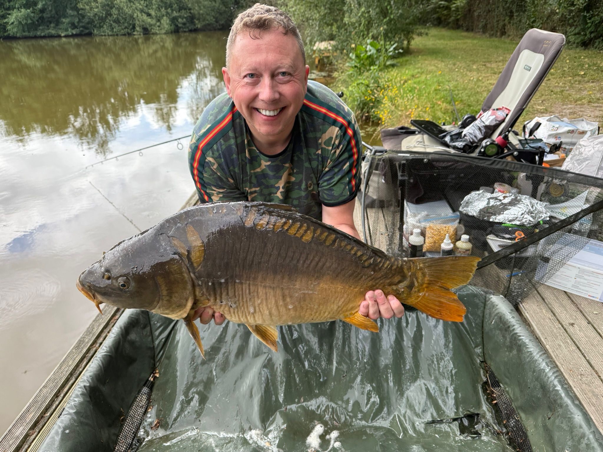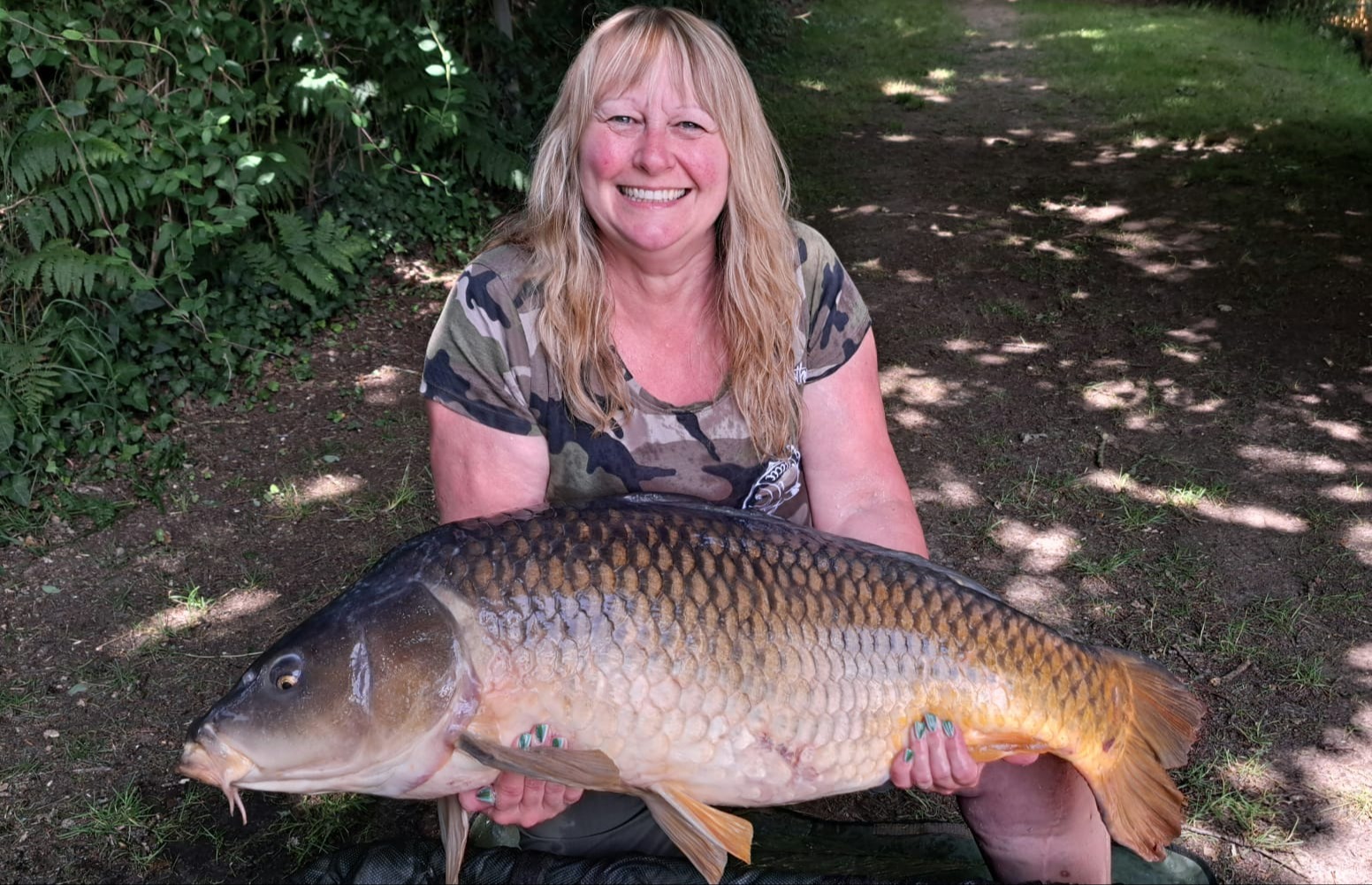 Jenny has held many lake records here over the years and the 50lb PB fish actually broke the Ladies Lake Record Common Carp, earning Jenny another celebratory bottle of wine to add to her collection!