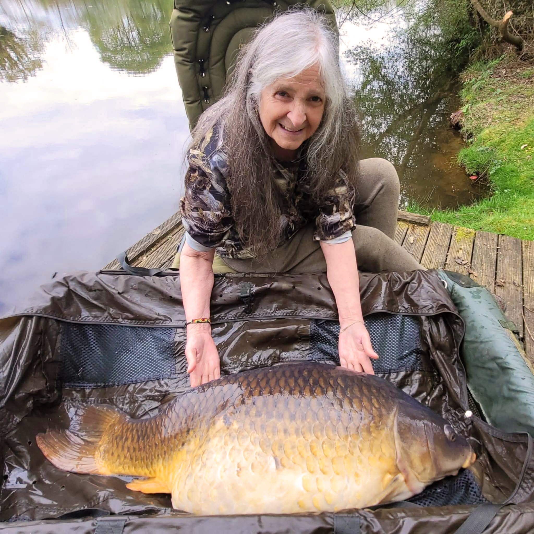 For the record Jenny Handley, highly trained volunteer at Rossendale & Pendle Mountain Rescue, from Burnley, Lancashire, takes the Ladies Lake Record Common Carp at 50lb on the nose on Thursday 17th April 2025 at 14:30, trapping the beast on three maize topped with a piece of plastic sweetcorn on the hair over broken boilies as background bait.